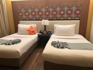 セブのホテルは幅広い価格帯があります。バックパッカー向けのホステルやゲストハウスなら500〜1500ペソ(約1300〜3900円)程度。中級ホテルは2000〜5000ペソ(約5200〜13000円)、高級ホテルやリゾートは1泊8000ペソ(約20800円)以上になることも。日本のビジネスホテルと比べると、同じ価格帯でもより豪華な施設が利用できることが多いです。
